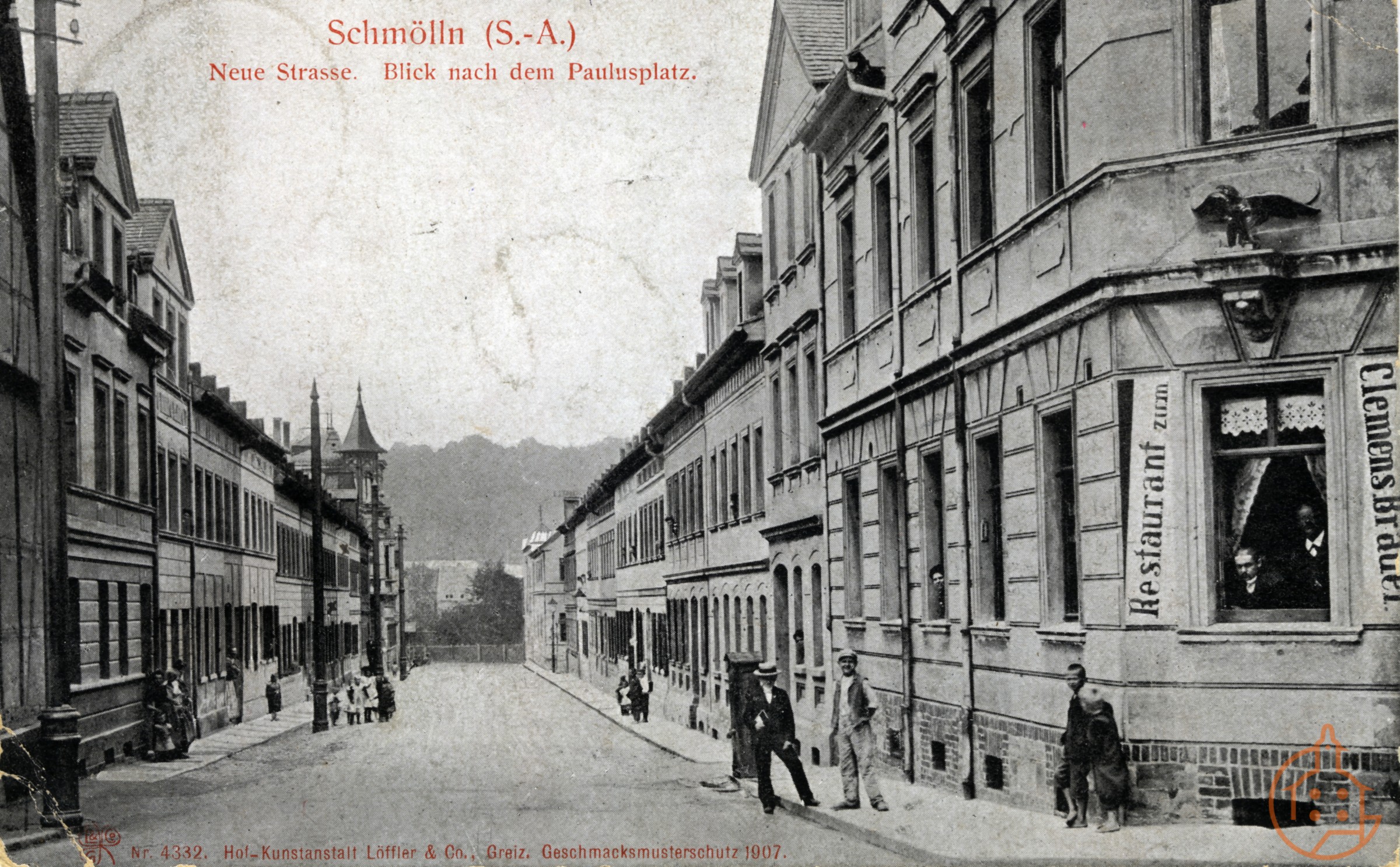 Neue Straße - Blick nach dem Paulusplatz (Beethovenplatz) mit Restaurant zum Clemens Brauer (?)