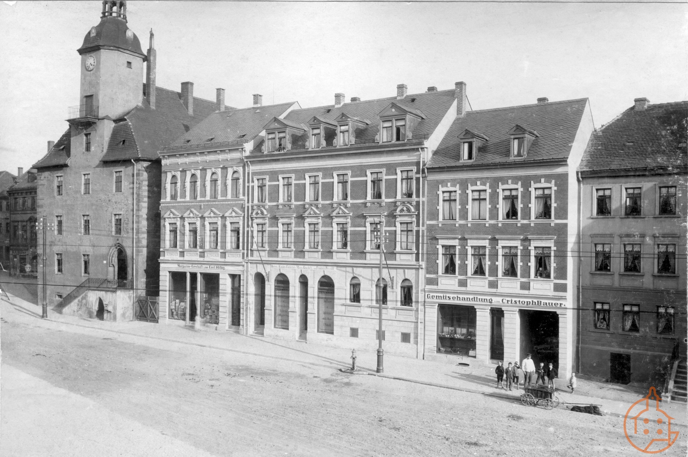 Blick auf die obere Marktseite ab Rathaus bis Fleischerei Weise