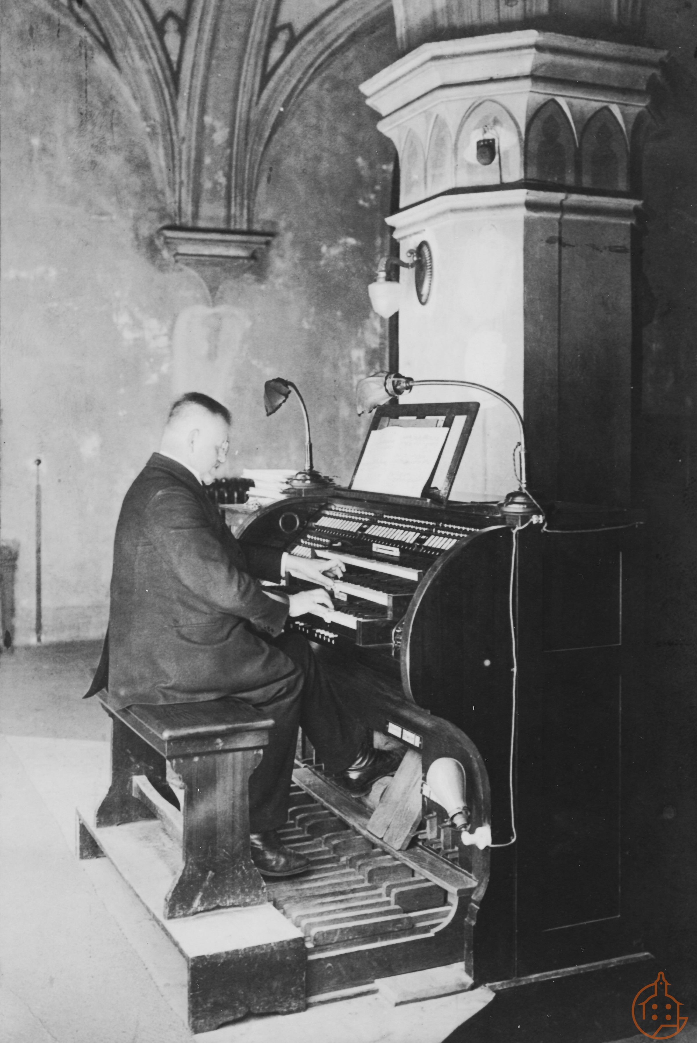 Lehrerkollegium der Volksschule (teilweise mit Namen) Gruppenfoto des Lehrerkollegiums der Schmöllner Volksschule mit Rektor Seyfahrt Dia, Nr. IV, 1