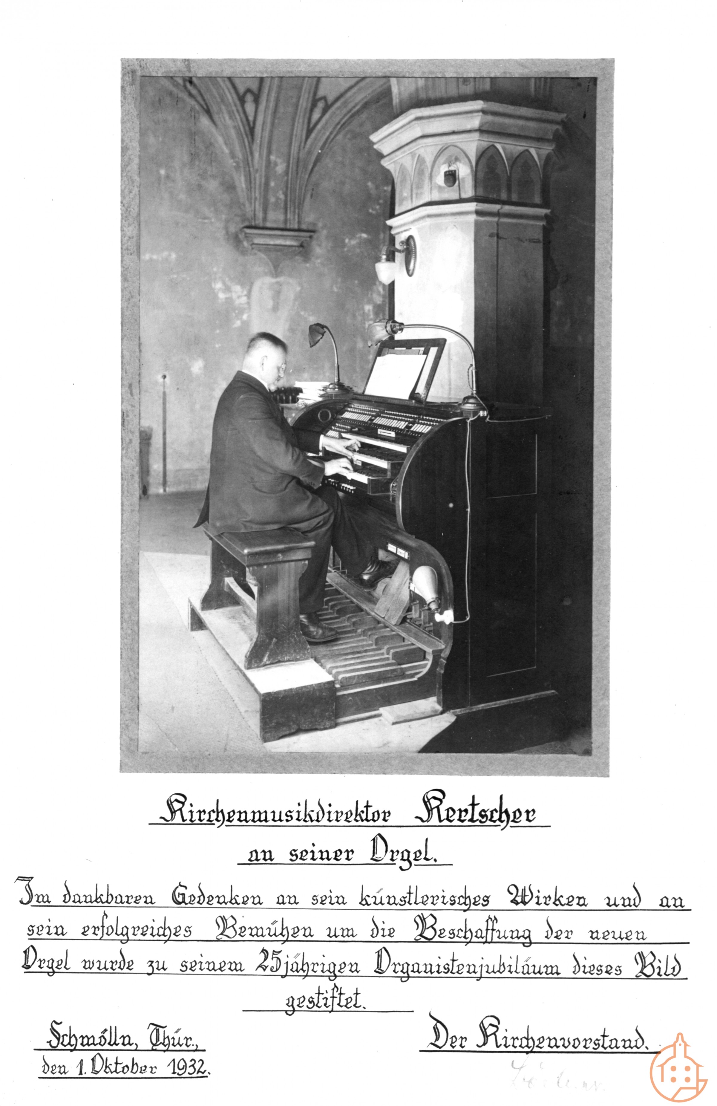Organist Florus Kertscher an der Jehmlich-Orgel