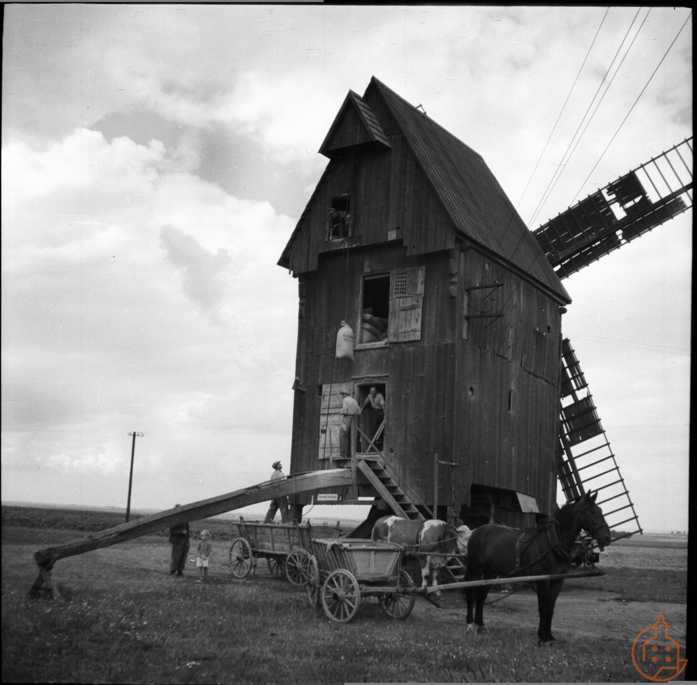 Pferdefuhrwerk vor Mühle
