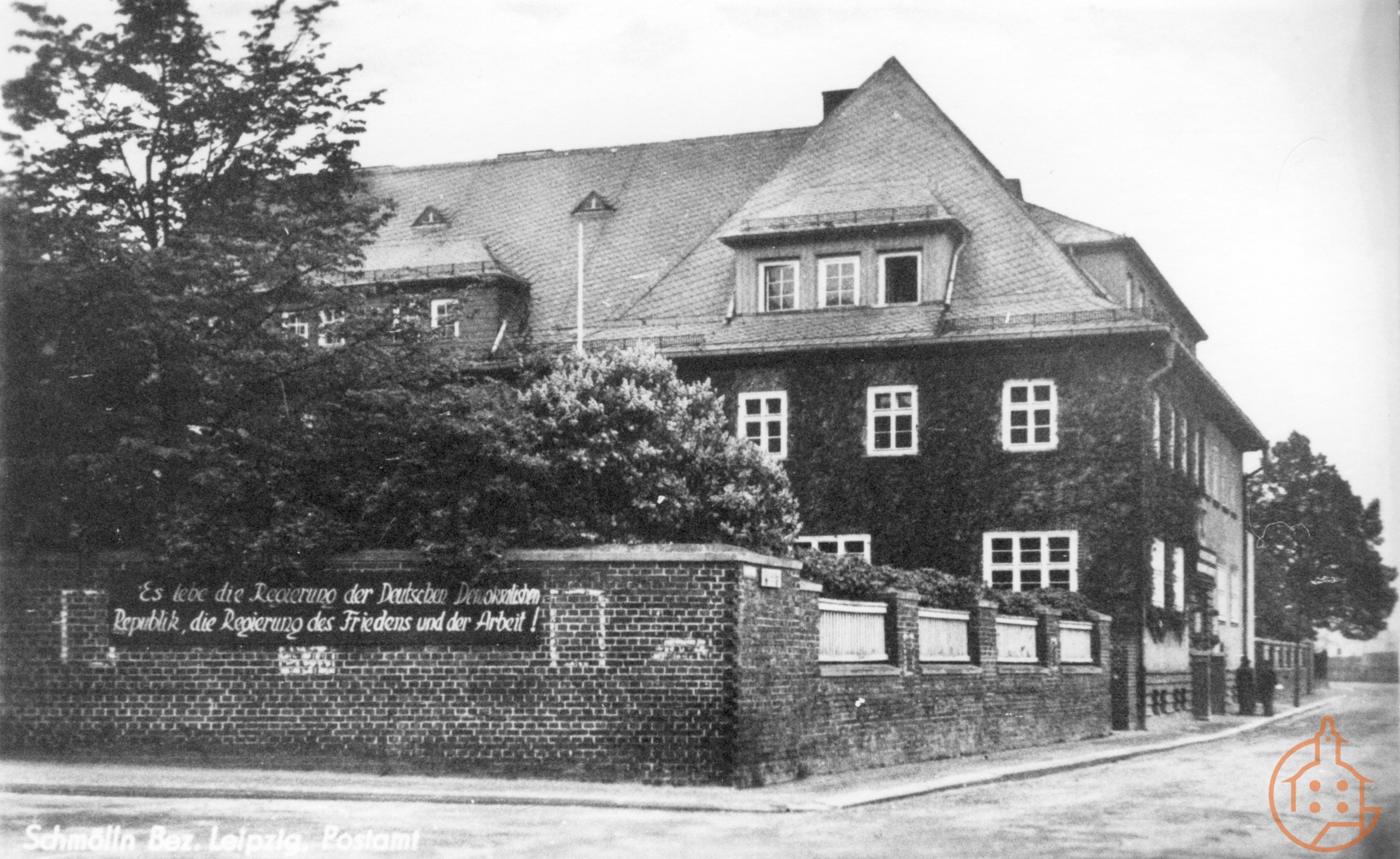 Postgebäude am Cosswitzanger, Blick aus Richtung Bahnübergang