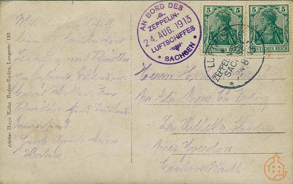 Postkarte anläßlich des Fluges mit dem Zeppelin-Luftschiff "Sachsen" von Leipzig nach Schmölln und zurück