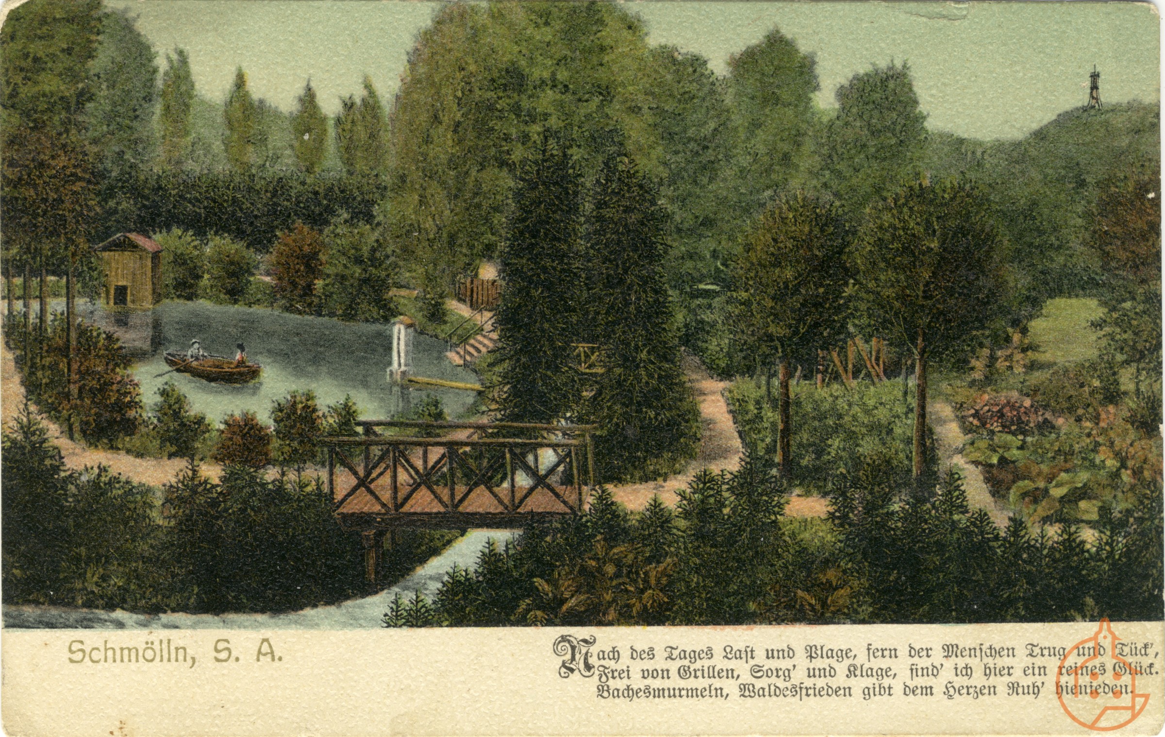 Schallers Garten mit Teich, Sommeritzer Straße 70 (?), mit Gedicht