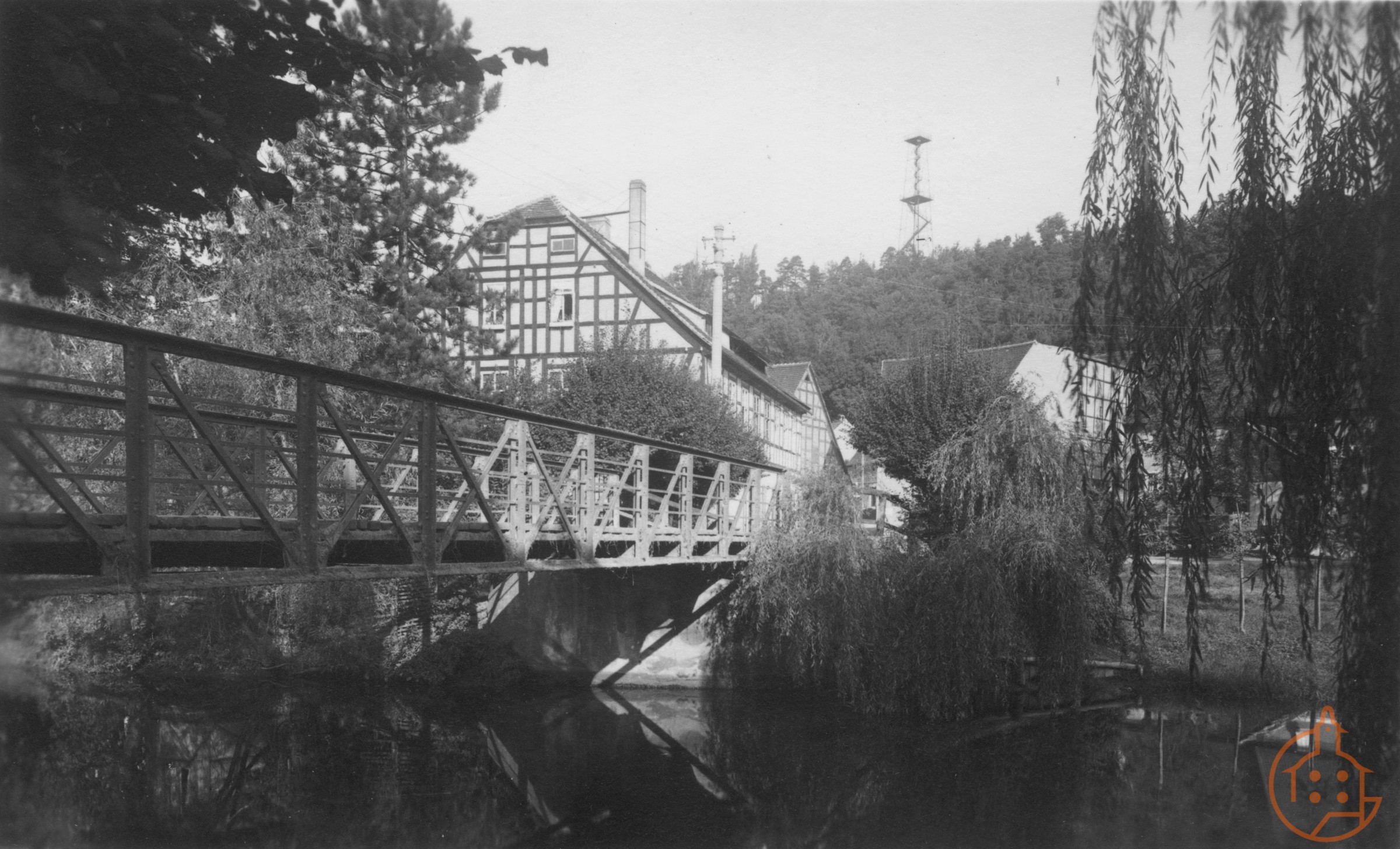 Brücke in der Grenzstraße mit Blick zum Aussichtsturm (Ernst-Agnes-Turm)