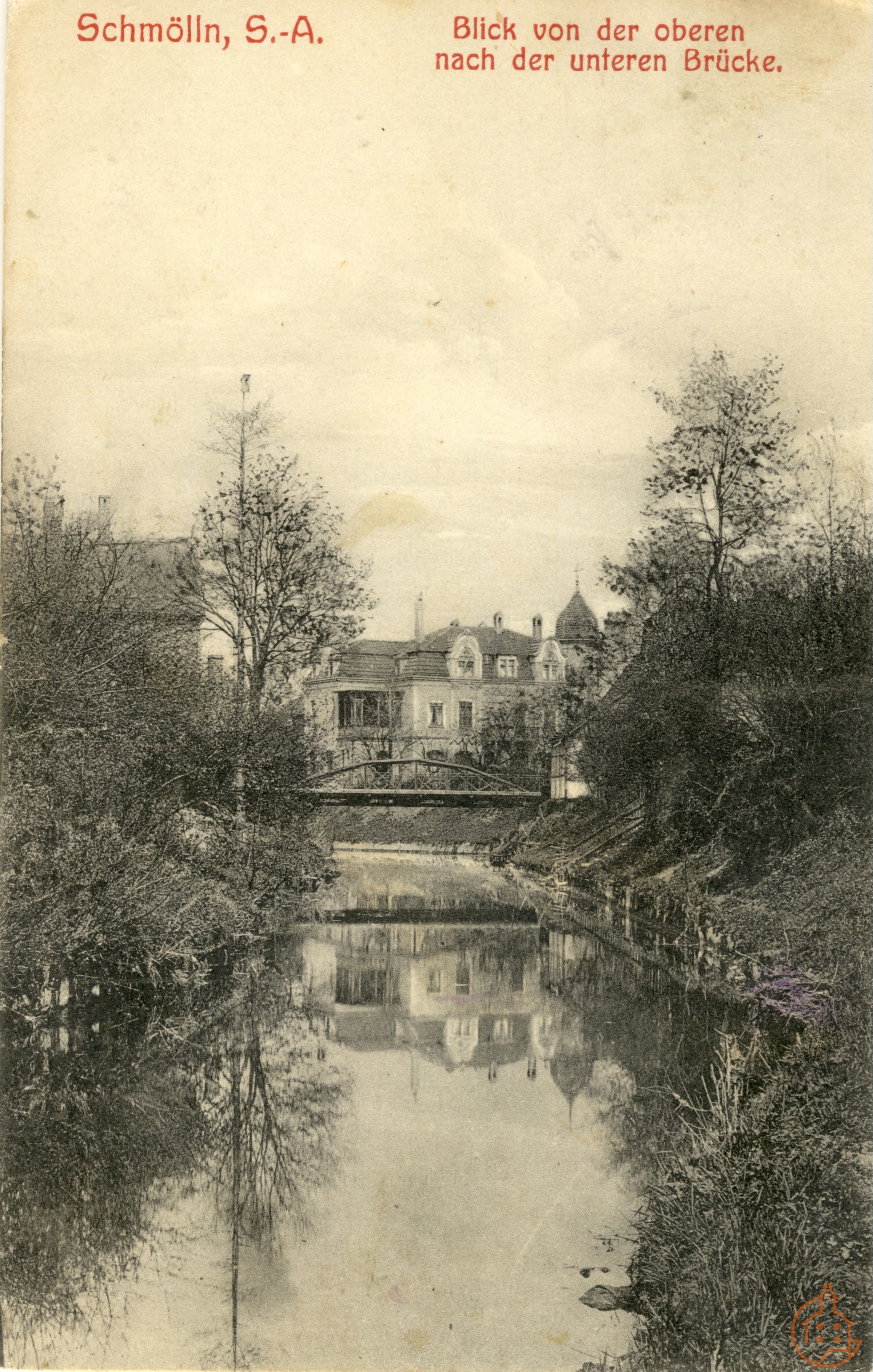 Postkarte mit Blick von der oberen Sprottenbrücke nach der unteren (Schillerplatz)