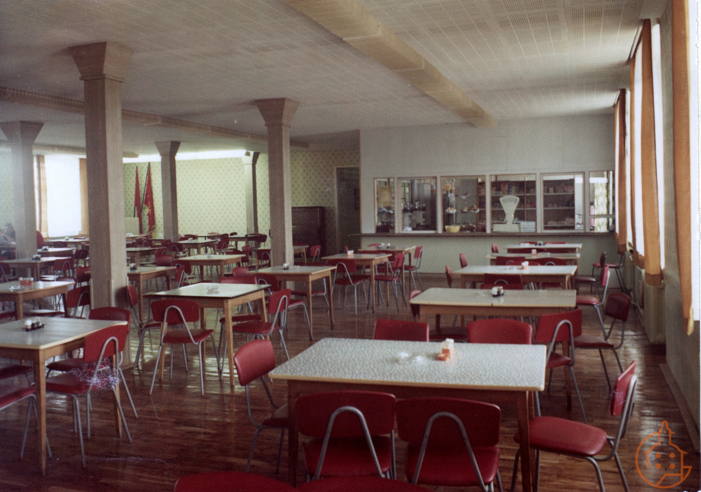 | Speisesaal mit HO-Verkaufsstelle im Werk I des VEB PWS (Volkseigener Betrieb Präzisionswerkzeugfabrik Schmölln) in der Altenburger Straße |