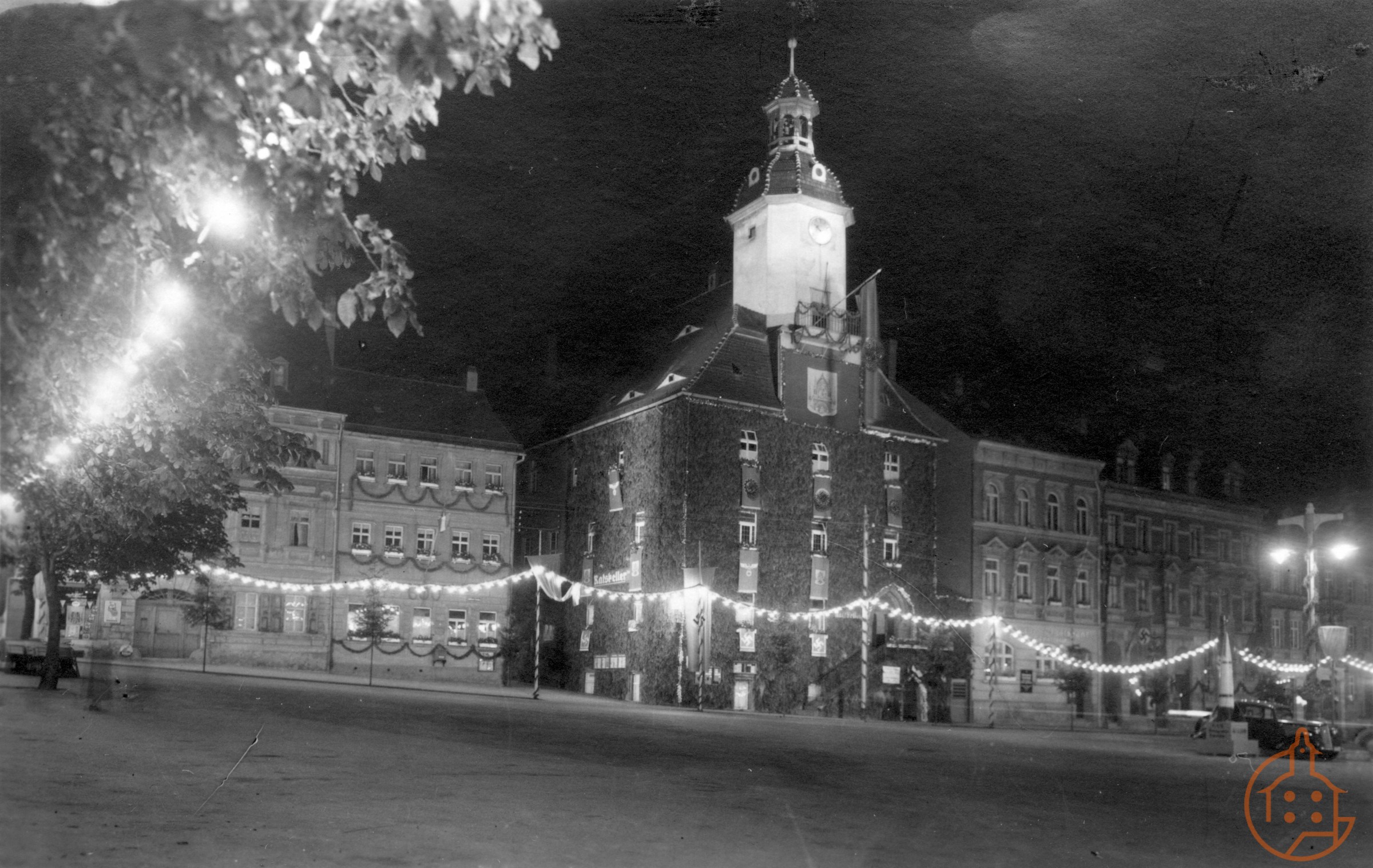 Beleuchtetes Rathaus, anläßlich der 600-Jahr-Feier