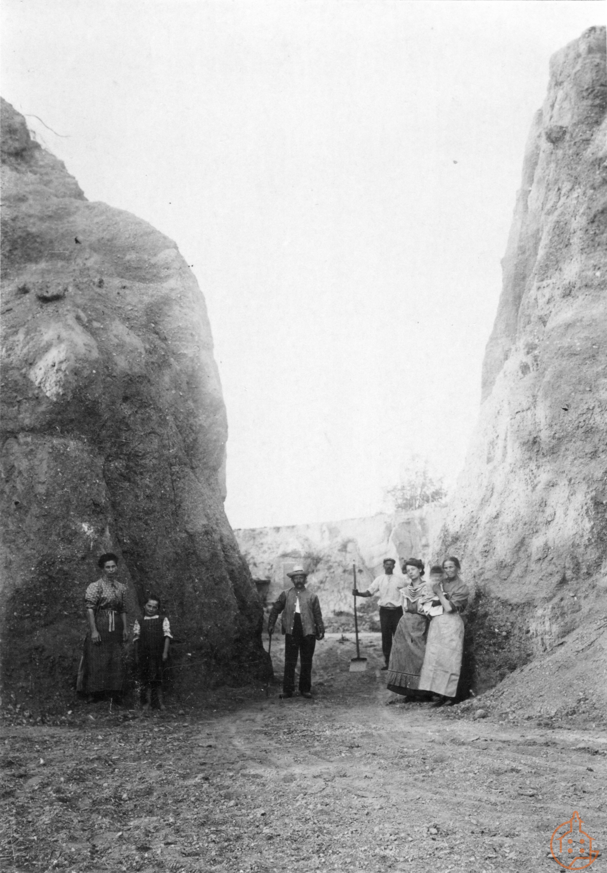 Sandgrube, Hohe Straße, Sandsteinfelsen, Arbeiter, Männer, Frauen, Kinder, Familienfoto