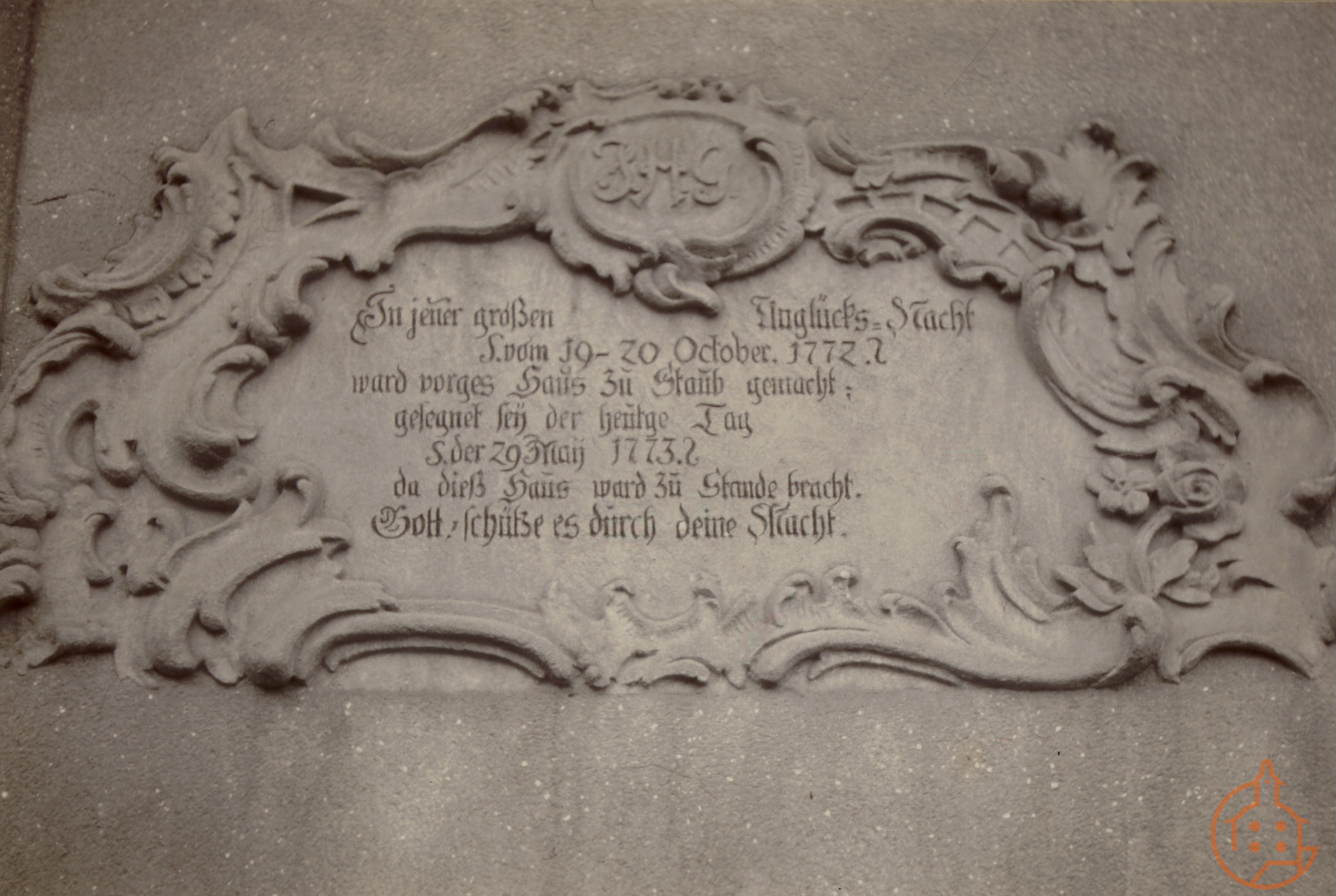 Schrift am Hause Greller zur Erinnerung an den großen Brand von 1772