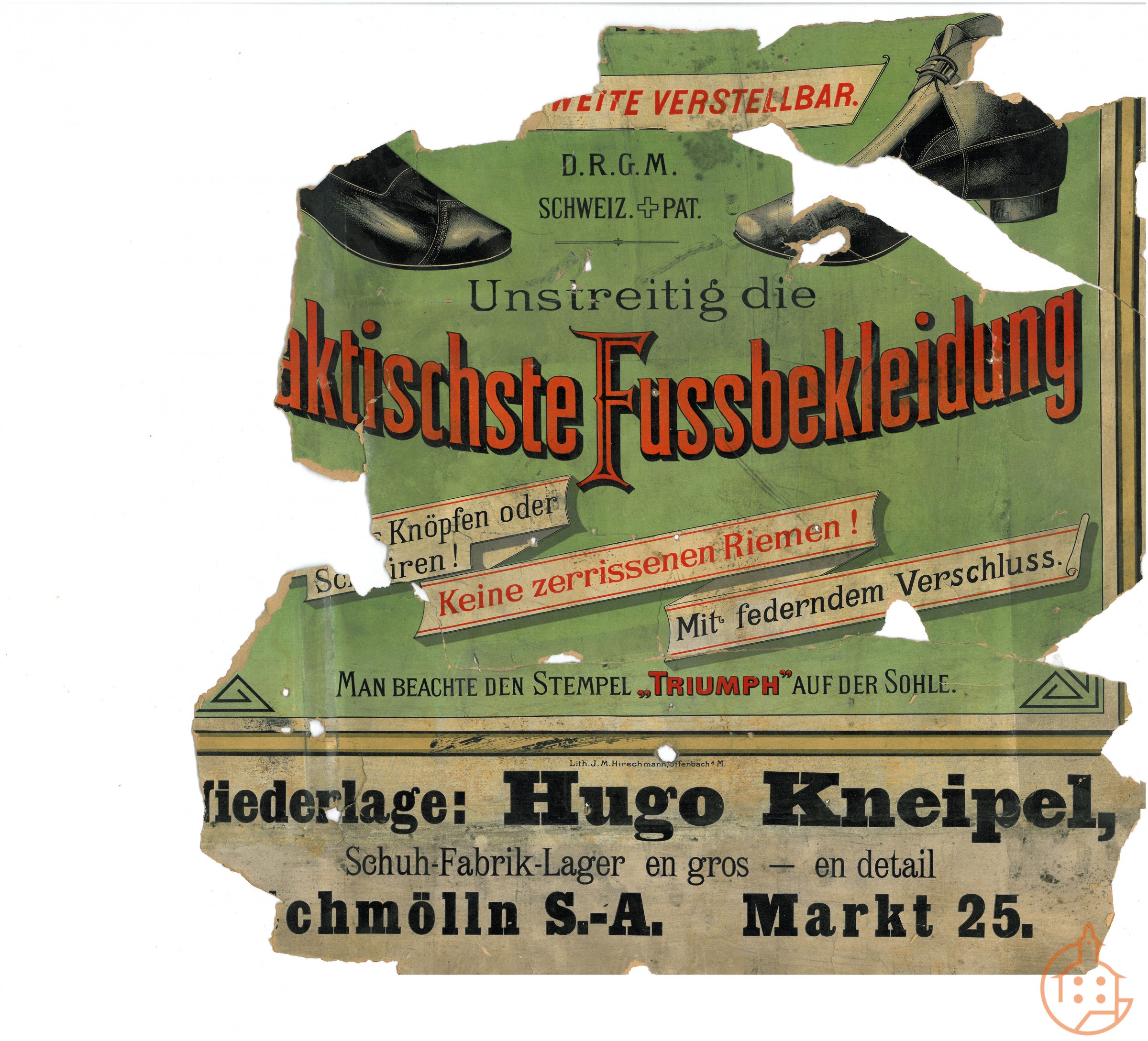Anzeige Schuhaus Hugo Kneipel, beschädigt.