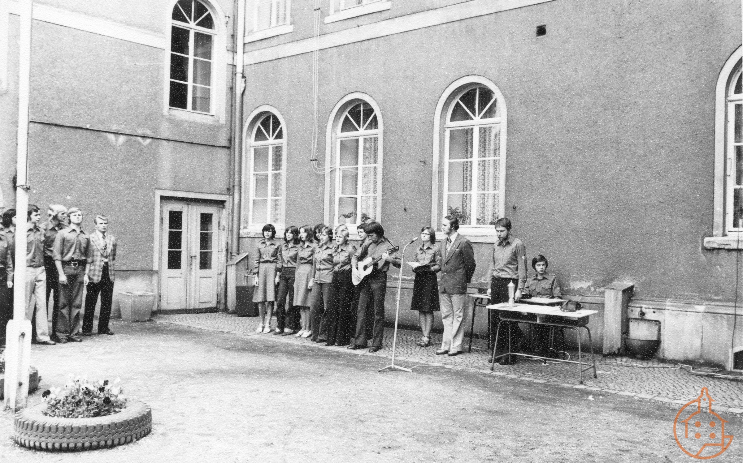 Appell auf dem Schulhof der EOS "Dr. Theodor Neubauer" anläßlich Schuljahresappell - Aufritt des Singeclubs