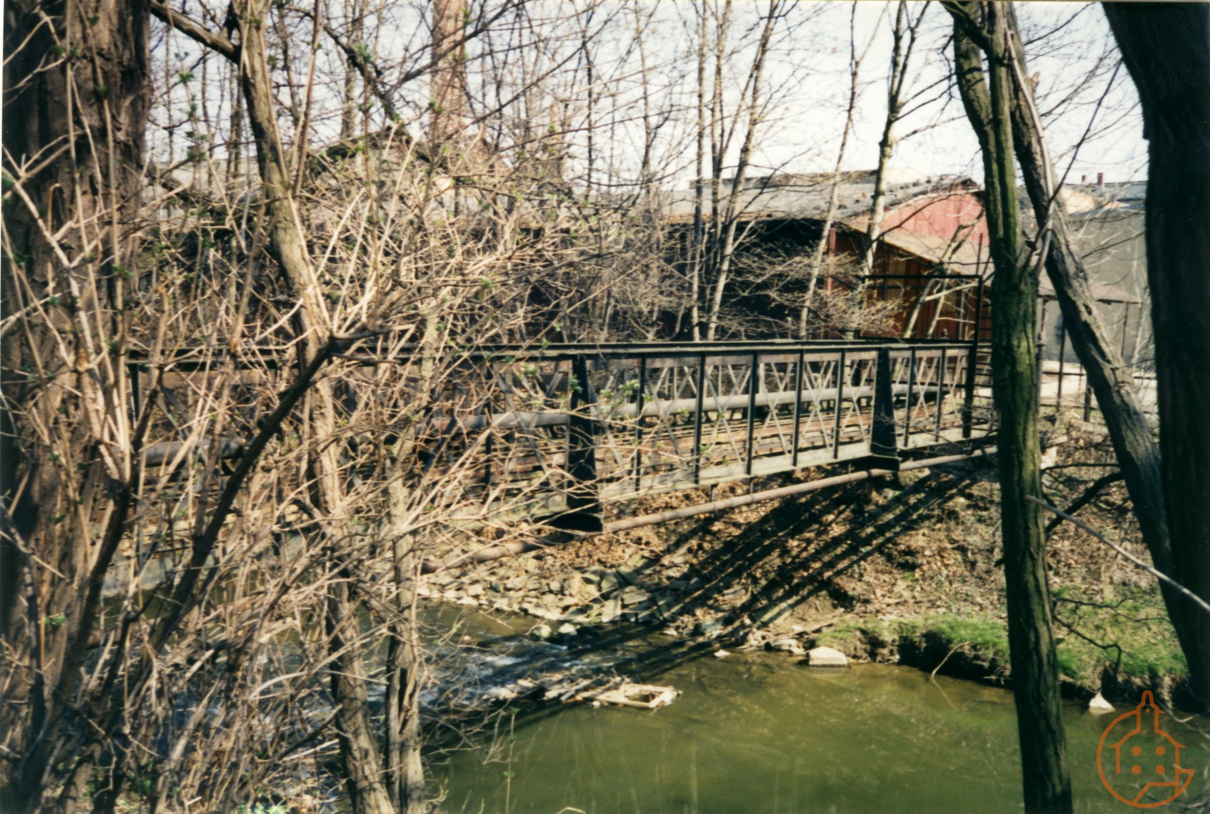 Schwarzer Steg im verfallenen Zustand. Fußgängerbrücke über die Sprotte zwischen Gartenstraße und Altenburger Straße. Einst beliebter Weg zum ehemaligen Tunnel unter dem Bahnhof.