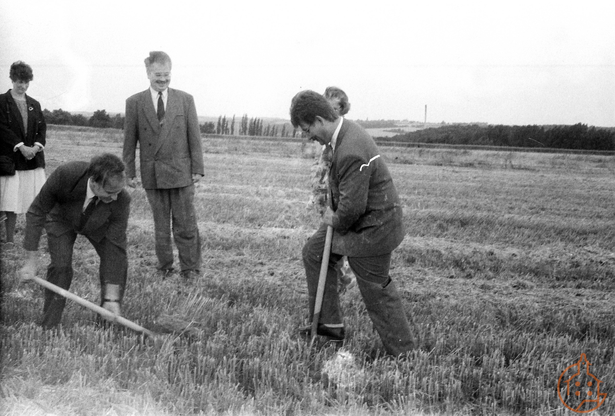 Bürgermeister Herbert Köhler und Herr Tröster beim ersten Spatenstich