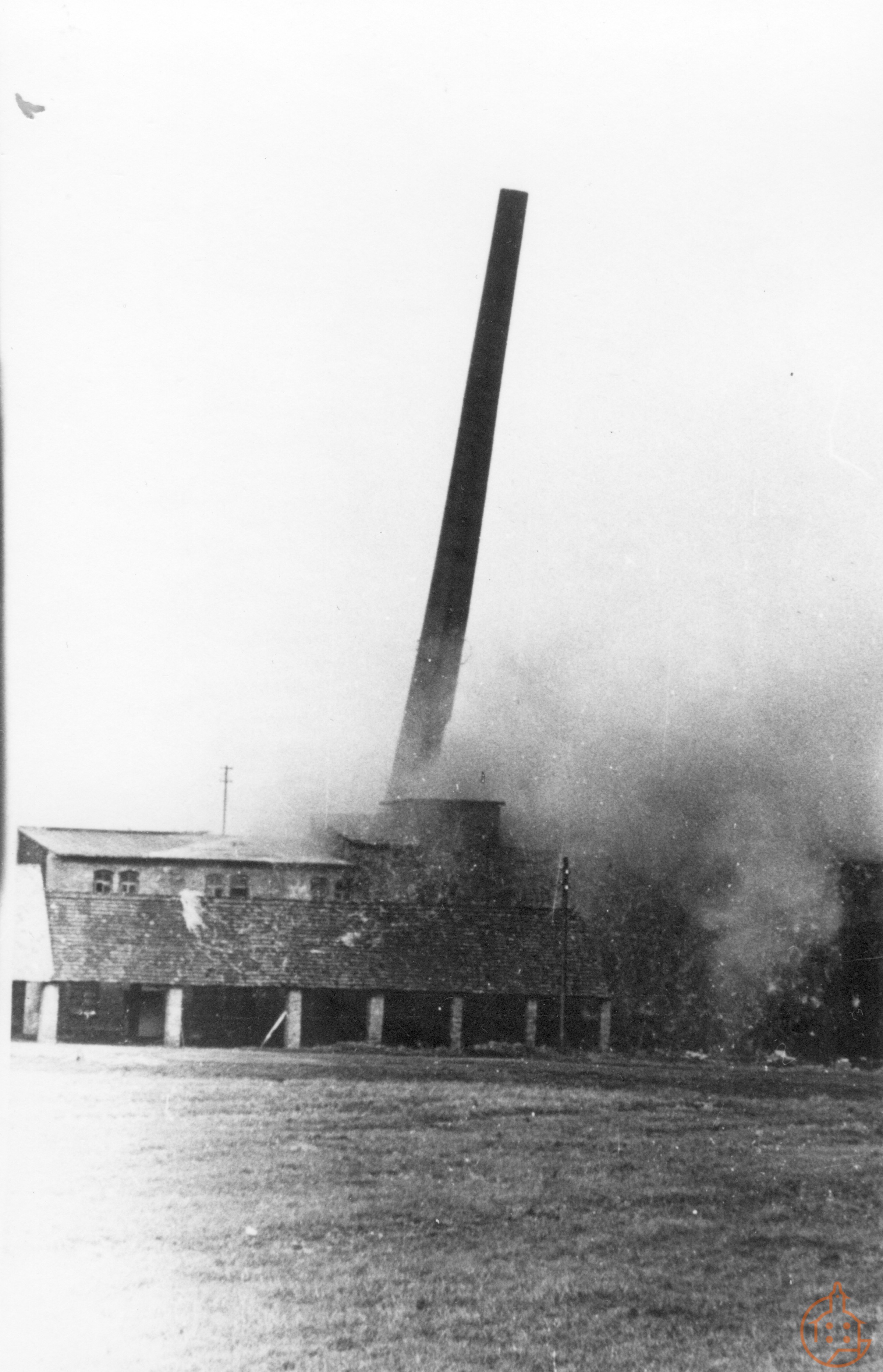 Sprengung des Schornsteins in der ehemaligen Ziegelei Mehlhorn am Kummerschen Weg