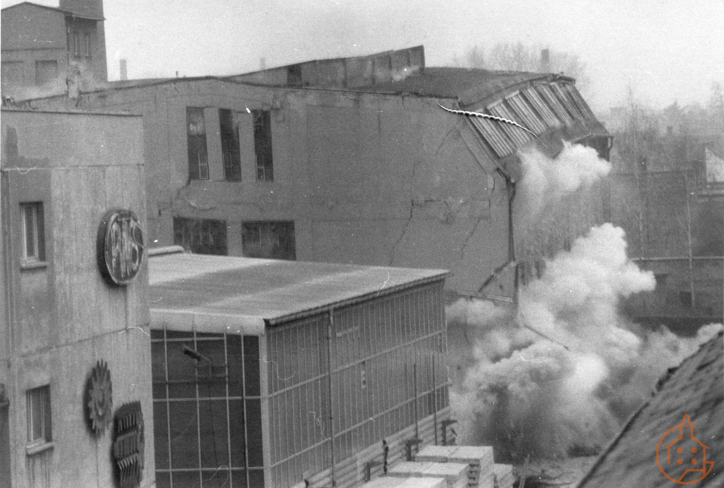 | Sprengung der Werkhalle des ehe- maligen VEB Galfütex (vormals Knopffabrik Valentin Donath) in der Gartenstraße |
