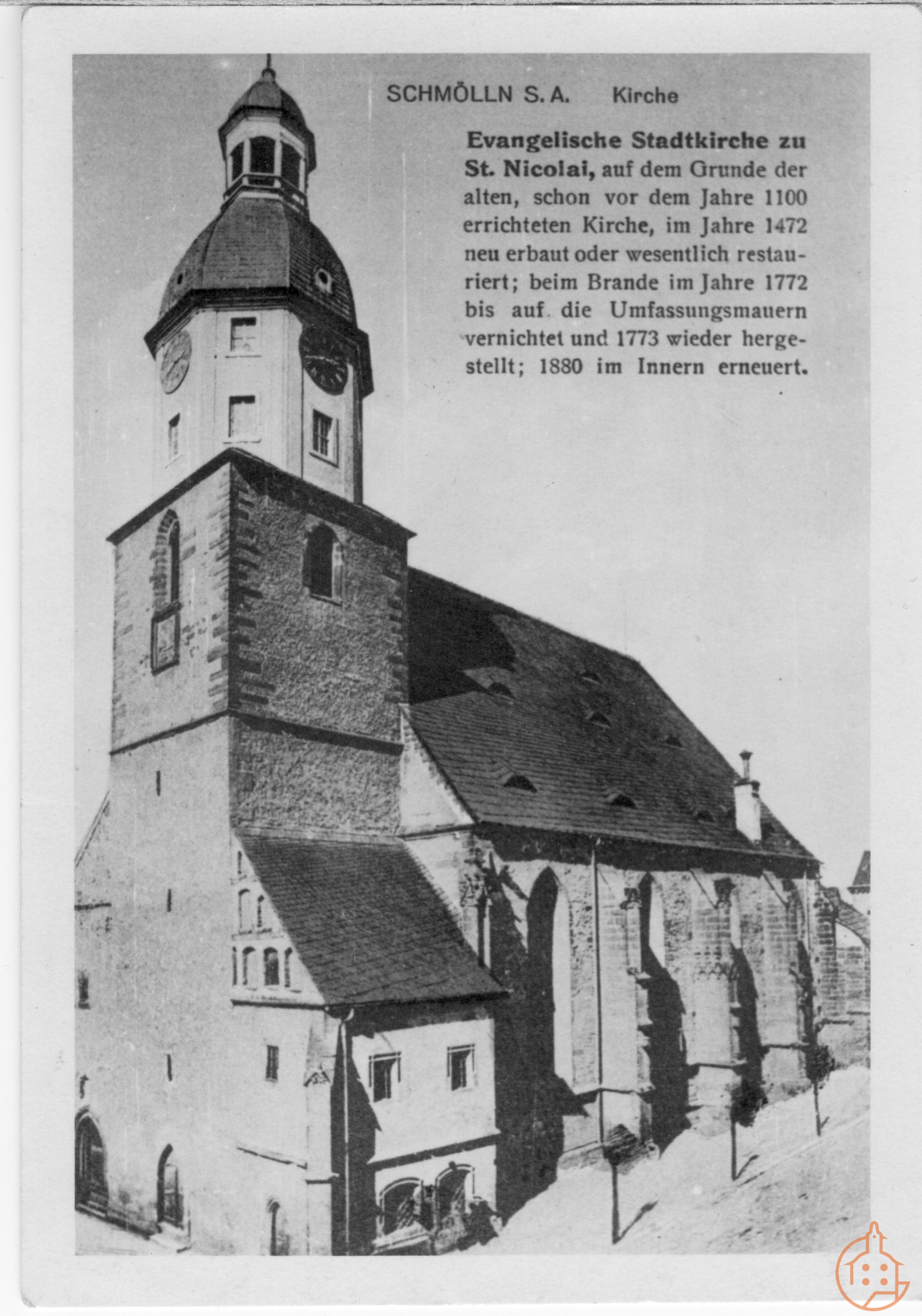 Evangelische Stadtkirche zu ST. Nicolai, auf dem Grunde der alten, schon vor dem Jahre 1100 errichteten Kirche, im Jahre 1472 neu erbaut oder wesentlich restauriert; beim Brande im Jahre 1772 bis auf die Umfassungsmauern vernichtet und 1773 wieder hergestellt; 1880 im Inneren erneuert.