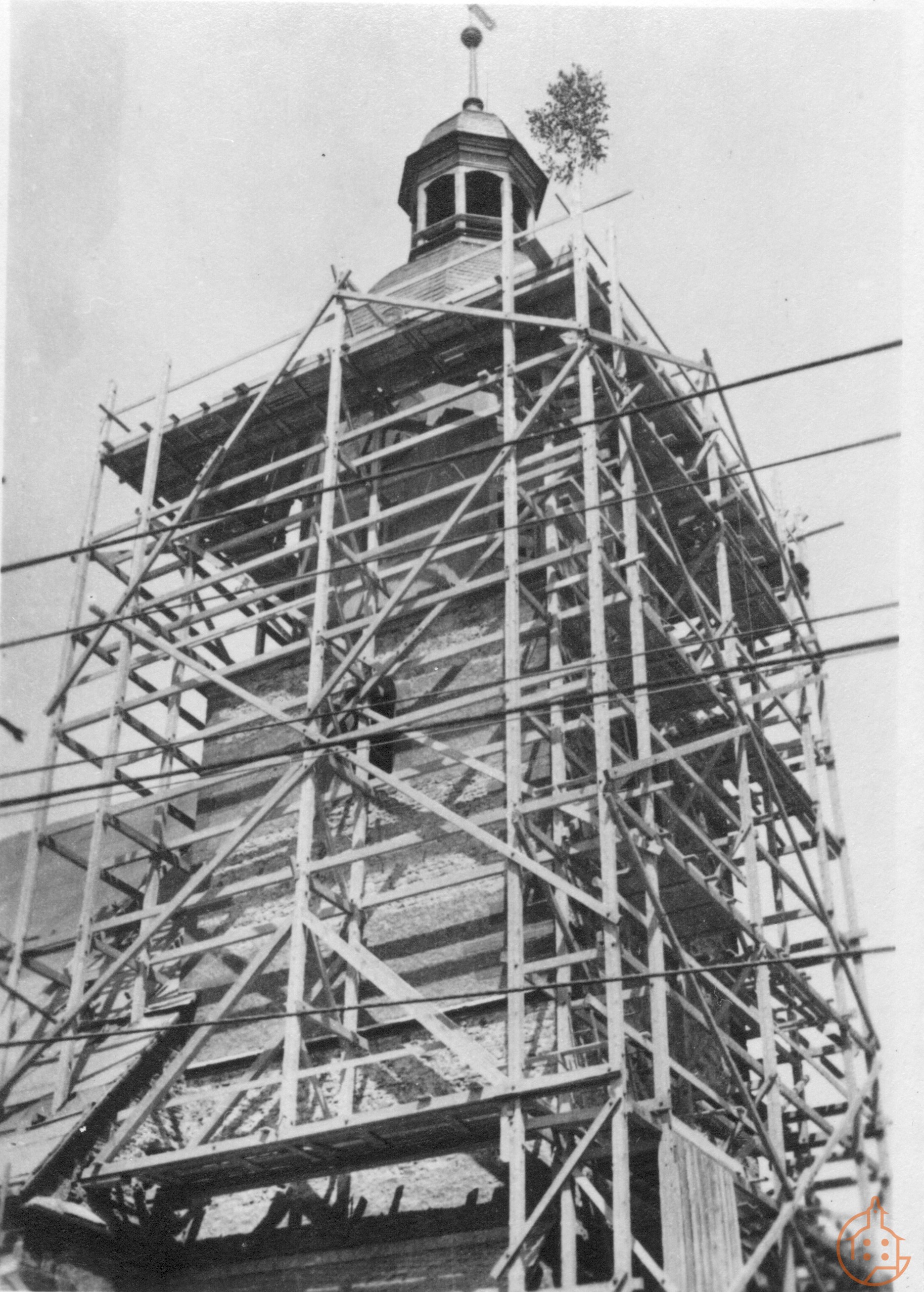 Eingerüstete Stadtkirche St. Nicolai zwecks Sanierungsarbeiten