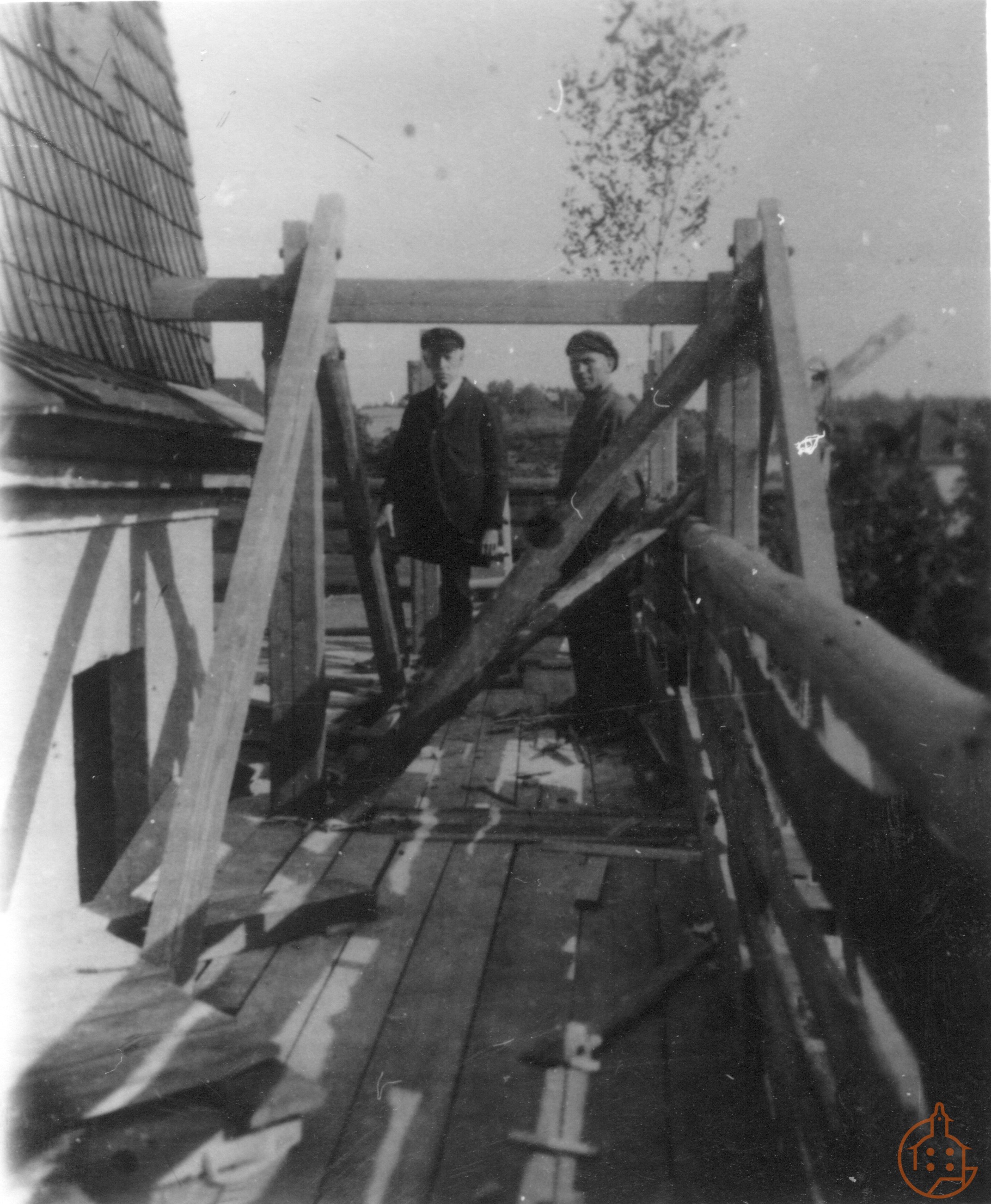 Männer auf dem Gerüst an der Stadtkirche St. Nicolai