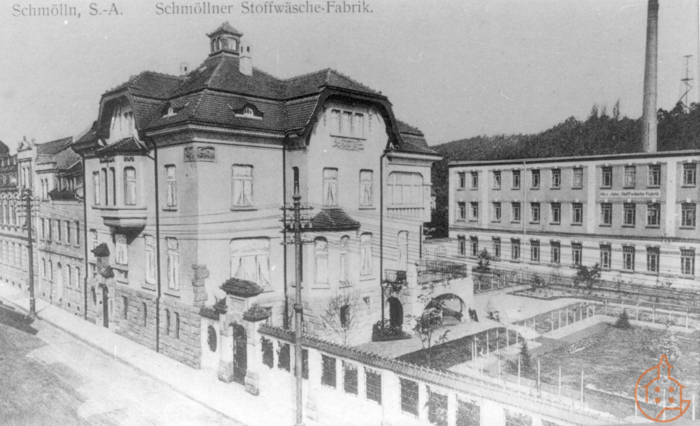 | Stoffwäsche-Fabrik Max Jahn in der Weststraße mit Villa |