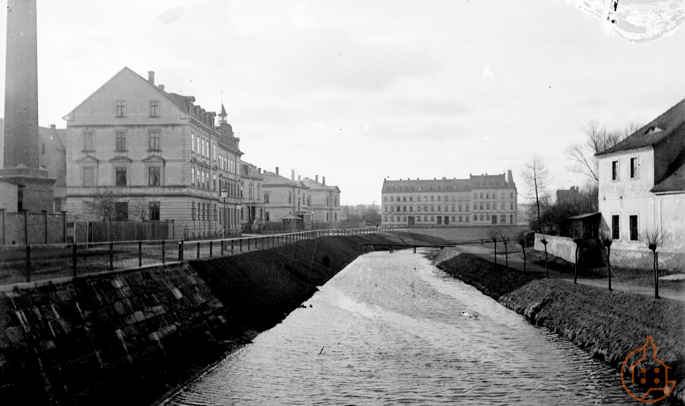 Uferstraße (links) und Wehrstraße (Hintergrund) sowie Sprotte