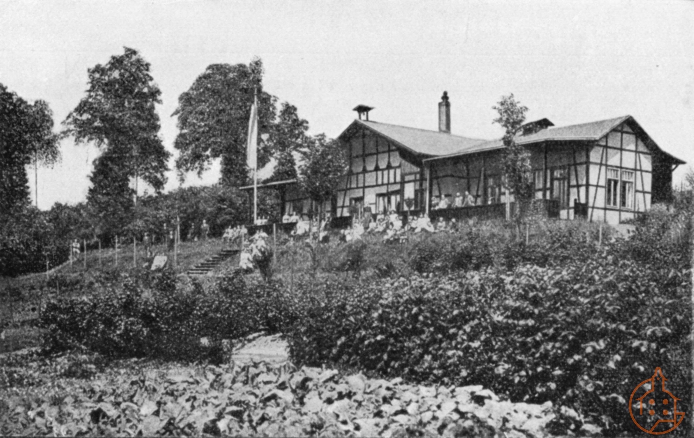 Seitlicher Blick auf Walderholungsstätte im Stadtwald (Genesungsheim der Allgemeinen Ortskrankenkasse)