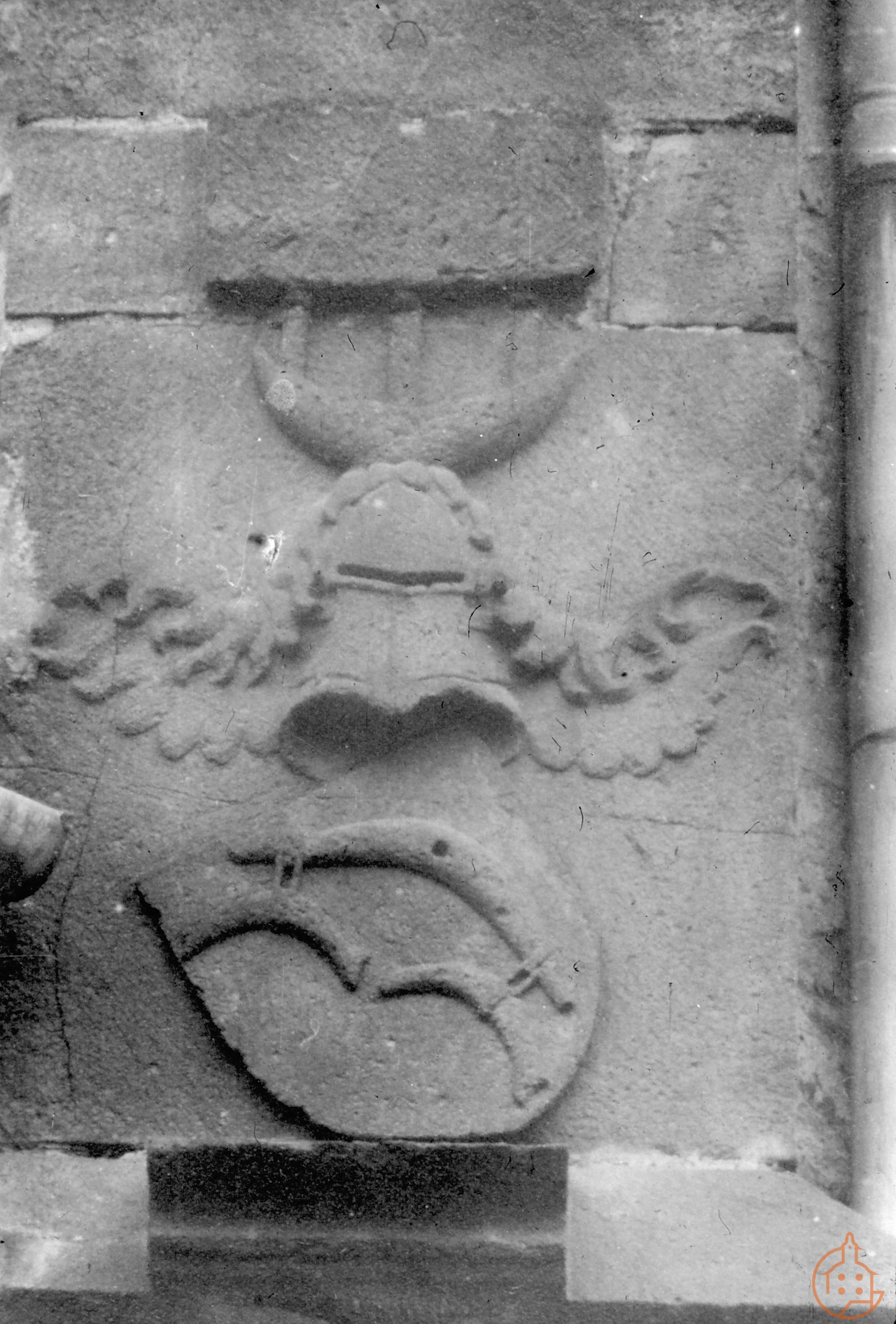 Wappen am Pfeiler der Stadtkirche St. Nicolai (Helm mit doppeltem Ortscheit)