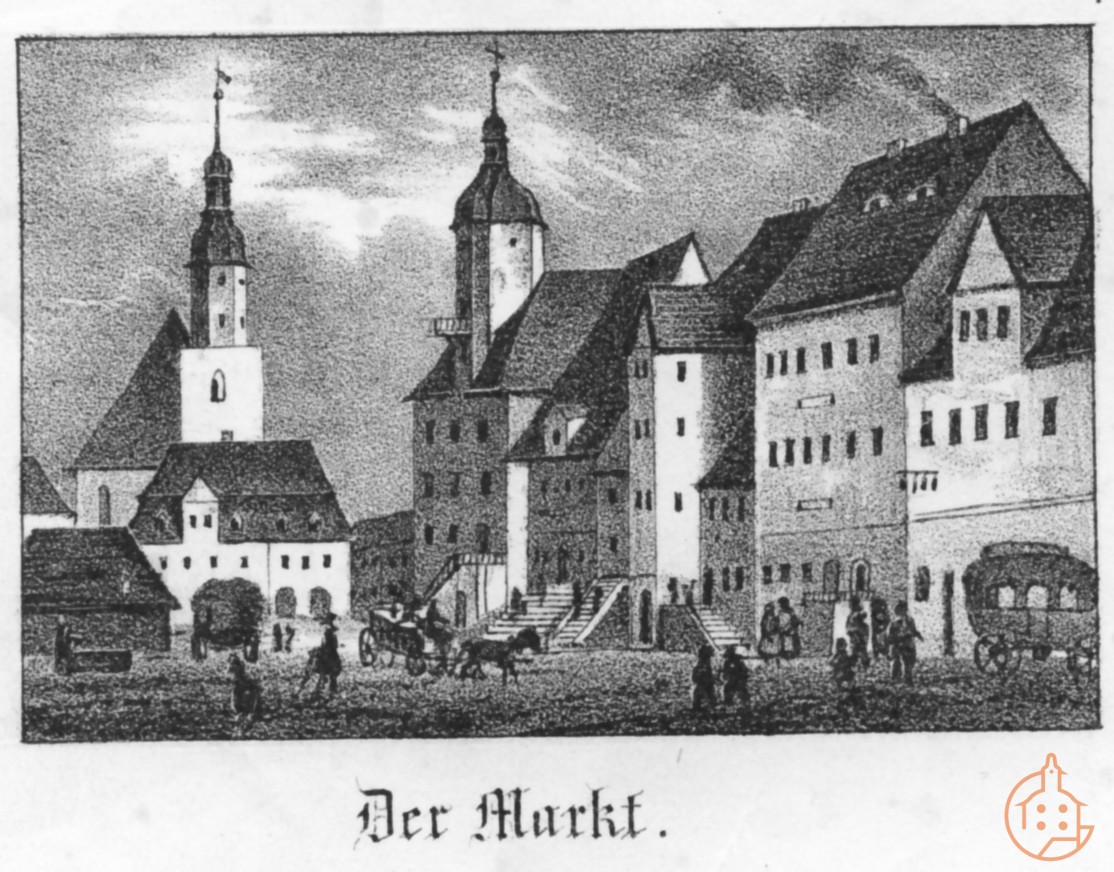 Der Markt mit Rathaus und Kirche