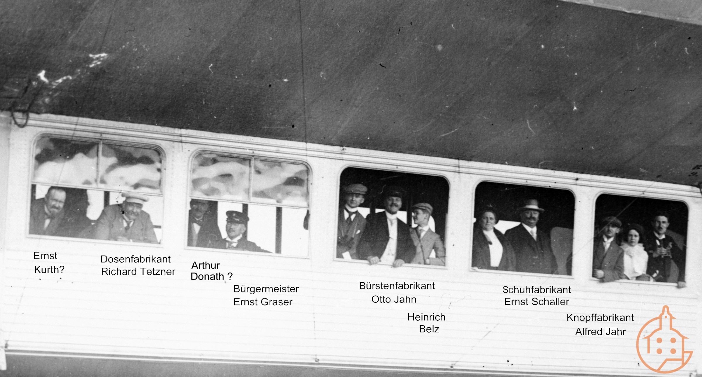 Das Zeppelin-Luftschiff "Sachsen vor dem Start auf der Nödenitzscher Höhe, Einstieg der Fahrgäste (namentlich)